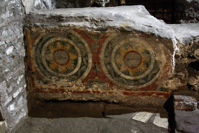 | Alttarinpalasessa on säilynyt vielä freskokoristeluja 500-luvulta. |